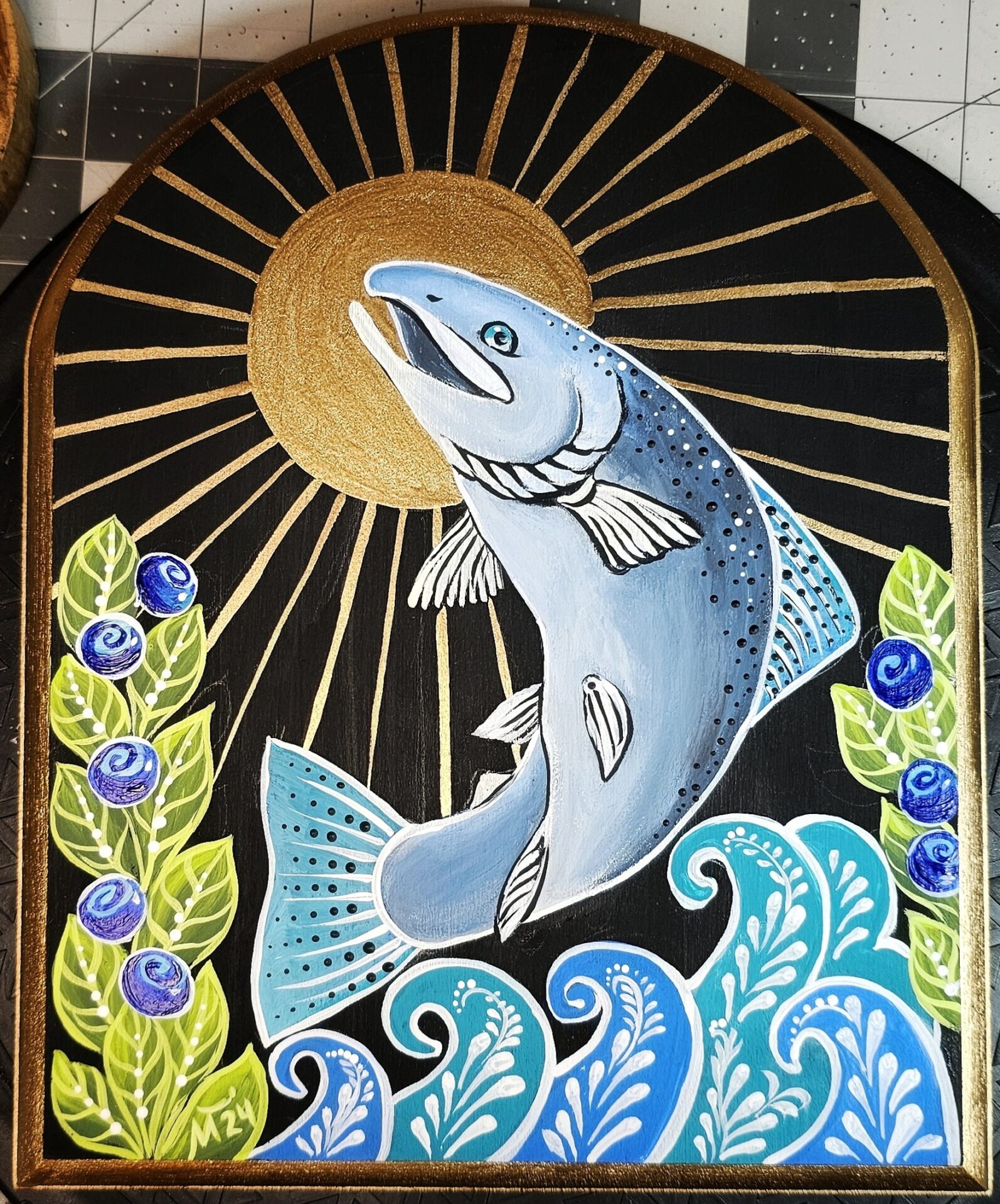 Cammie May is the owner and operator of Cambazam Art, based in Craig on Prince of Wales Island. Her artwork is greatly inspired by nature and local wildlife and is full of color and details. Her mix of realism and abstraction gives her work a fresh perspective on the natural world around us. She uses pen and ink, mushroom pores, prints, and watercolor to bring her art to life!
